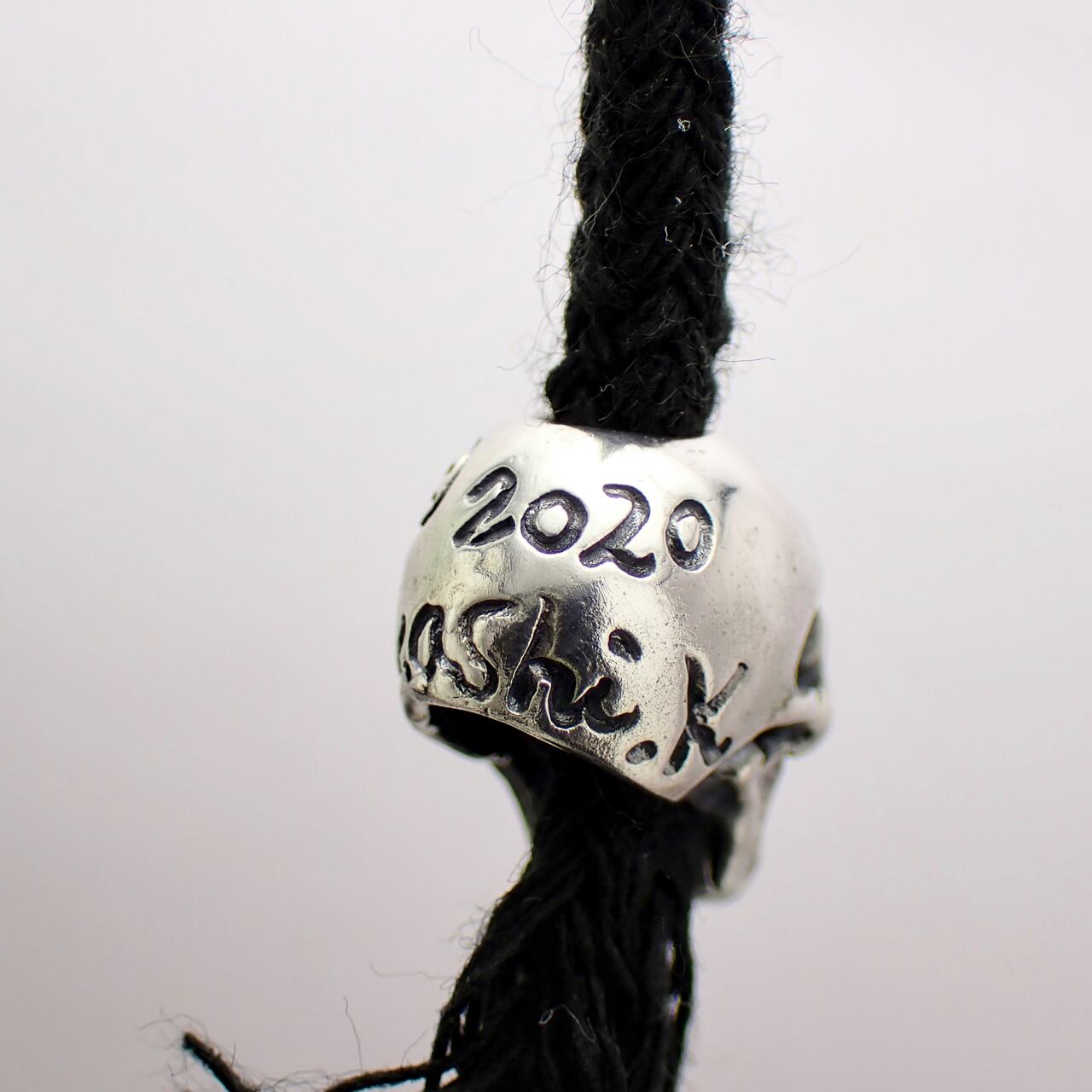 パーカー、フーディのヒモに付けることを想定して創作したスカルビーズ。
